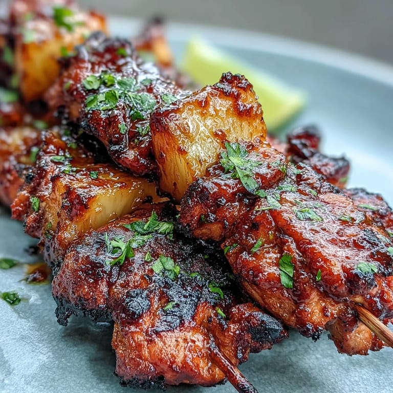 Merken Beim Grillen dieser Chicken Al Pastor Spieße wehte an einem schwülen Sommerabend ein würziger Duft über unseren Balkon – der typische Geruch von Guajillo-Chilis und gegrillter Ananas. Mir fiel sofort auf, wie Farben und Aromen dieser mexikanisch inspirierten Kombination trotz ihres exotischen Klangs erstaunlich simpel umzusetzen waren. Die Marinade, leuchtend rot und betörend intensiv, zog die Blicke meiner neugierigen Nachbarn auf sich. Ich habe mich dabei ertappt, zur Musik der grillenden Hähnchenteile zu tanzen und mit einem leichten Grinsen in den Sommer zu starten. Nicht jeder Grillabend fühlt sich wie Urlaub an – dieser schon.