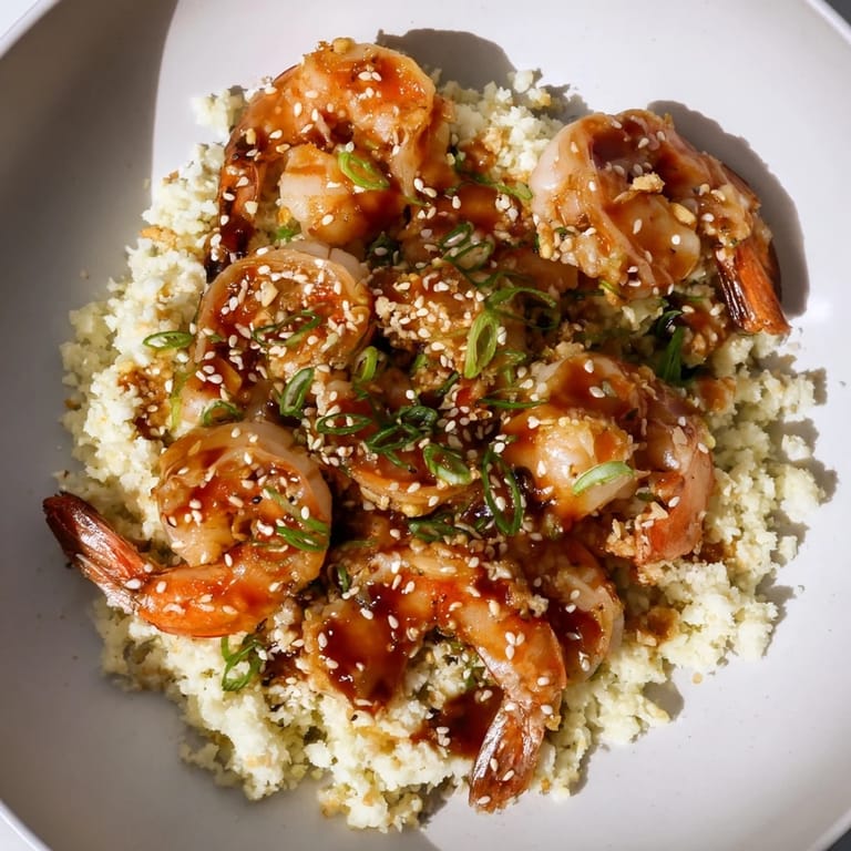 Merken Eines Abends, als ich nach einem langen Tag nach Hause kam, wollte ich etwas Schnelles, aber dennoch Befriedigendes kochen. Ich öffnete den Kühlschrank und sah eine Schüssel mit großen Garnelen, die ich vergessen hatte, und plötzlich erinnerte ich mich an einen Besuch in einem kleinen asiatischen Restaurant, in dem die Köchin ihre Ingwer-Knoblauch-Mischung direkt vor meinen Augen knackig in der Pfanne röstete. Ich beschloss, es an diesem Abend nachzumachen, mit Blumenkohl-Reis statt der üblichen weißen Körner. Das Ergebnis war so köstlich und unkompliziert, dass ich es seitdem immer wieder koche.