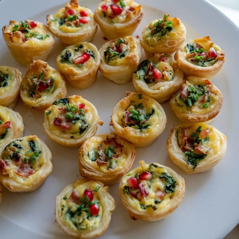 Merken Ein festliches und köstliches Arrangement von mundgerechten Mini-Quiches, die zu einem Weihnachtsbaum geformt sind – perfekt als festlicher Partymittelpunkt oder Vorspeise.