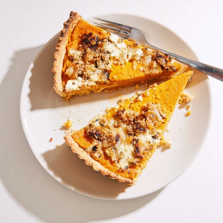 Merken Herzhafte Kürbis-Käse-Tarte ist eine goldene, knusprige Tarte, gefüllt mit cremigem Kürbispüree, würzigen Käsesorten und aromatischen Kräutern – ideal als Brunch-Highlight oder als gemütliche Beilage zum Abendessen.