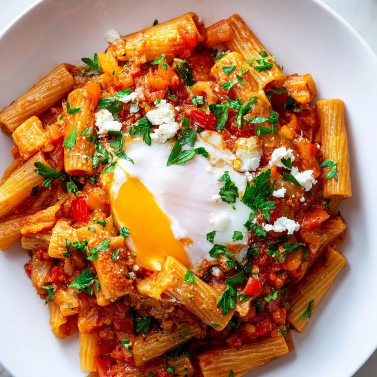 Merken Es war ein dritter Abend in Folge, an dem ich absolut keine Energie hatte, etwas Kompliziertes zu kochen. Die Küche roch noch leicht nach dem Paprika-Gericht vom Vortag, und irgendwie kam mir die Idee: Warum nicht die cremige Shakshuka-Soße einfach mit Pasta verbinden? Das Ergebnis war so überraschend gut, dass es seitdem mein geheimes I'm- exhausted-und-habe-30-Minuten-Gericht geworden ist.