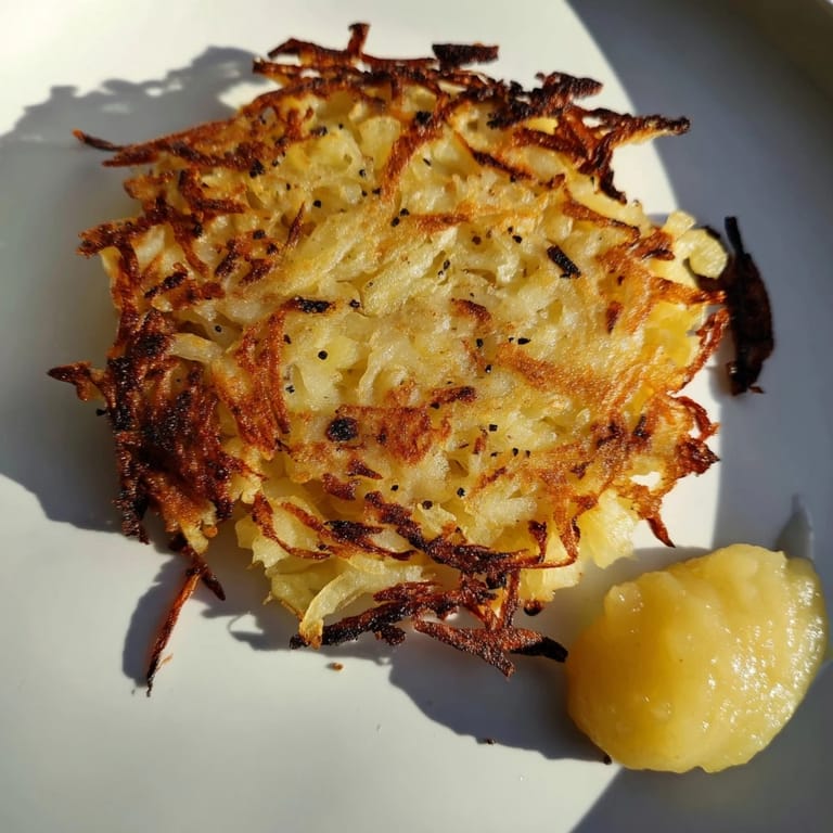 Traditionell werden diese Kartoffelpfannkuchen mit Apfelmus oder Sauerrahm serviert, was die herzhaften Aromen wunderbar ergänzt.