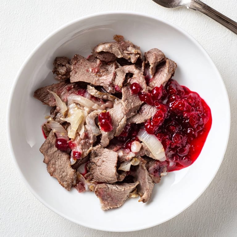 Dieser Eintopf wird mit cremigen Kartoffelpüree und einer großzügigen Portion Preiselbeeren oder -marmelade serviert—das ist der finnische Klassiker. Die sauren, glänzenden Beeren auf dem weichen Kartoffelpüree neben dem cremigen Fleisch zu sehen, ist schon ein Fest für die Augen. Manche Finnen magern auch eingelegte Gurken dazu, was den Gaumen erfrischend neutralisiert.