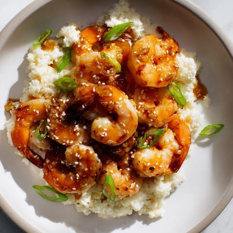 Merken Eines Abends, als ich nach einem langen Tag nach Hause kam, wollte ich etwas Schnelles, aber dennoch Befriedigendes kochen. Ich öffnete den Kühlschrank und sah eine Schüssel mit großen Garnelen, die ich vergessen hatte, und plötzlich erinnerte ich mich an einen Besuch in einem kleinen asiatischen Restaurant, in dem die Köchin ihre Ingwer-Knoblauch-Mischung direkt vor meinen Augen knackig in der Pfanne röstete. Ich beschloss, es an diesem Abend nachzumachen, mit Blumenkohl-Reis statt der üblichen weißen Körner. Das Ergebnis war so köstlich und unkompliziert, dass ich es seitdem immer wieder koche.